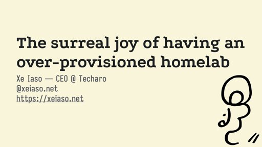 xelar@lemmy.ml to Selfhosted@lemmy.worldEnglish · 14 days agoThe surreal joy of having an overprovisioned homelab (2025) - from Anubis creatorxeiaso.netexternal-linkmessage-square39linkfedilinkarrow-up1211arrow-down15file-text