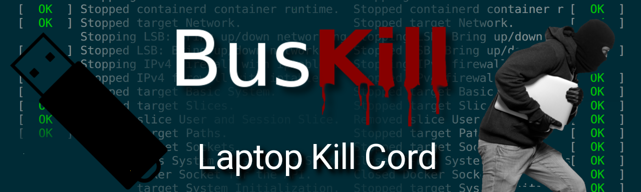 BusKill is a laptop kill-cord. It’s a USB cable with a magnetic breakaway that you attach to your body and connect to your computer.